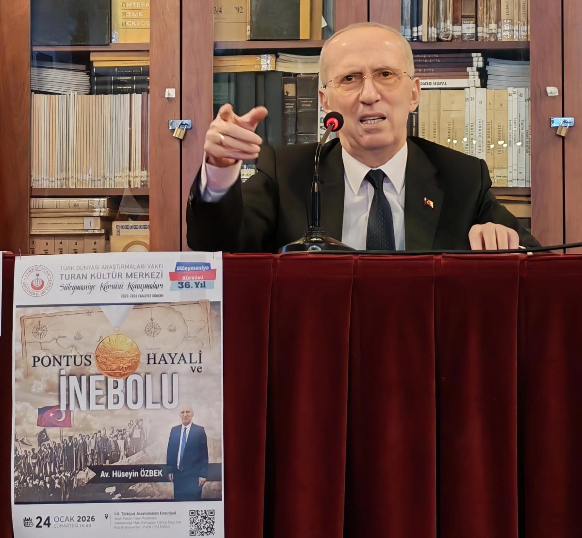 Turan Kültür Merkezi Süleymaniye Kürsüsü etkinliklerimize, 24 Ocak 2026 Cumartesi günü 14.00’te, İstanbul Üniversitesi Türkiyat Araştırmaları Enstitüsü Konferans salonunda, Av. Hüseyin Özbek’in konuşmacı olduğu “Pontus Hayali ve İnebolu” konulu konferansımızla devam ettik.