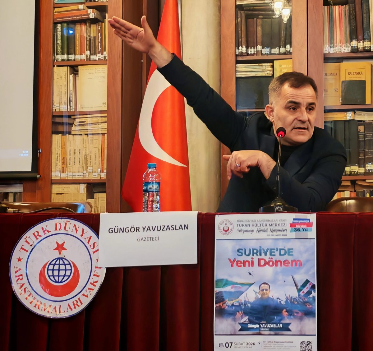 Turan Kültür Merkezi Süleymaniye Kürsüsü etkinliklerimize, 7 Şubat 2026 Cumartesi günü 14.00’te, İstanbul Üniversitesi Türkiyat Araştırmaları Enstitüsü Konferans salonunda, gazeteci Güngör Yavuzaslan’ın verdiği “Suriye’de Yeni Dönem” konulu konferansımızla devam ettik.