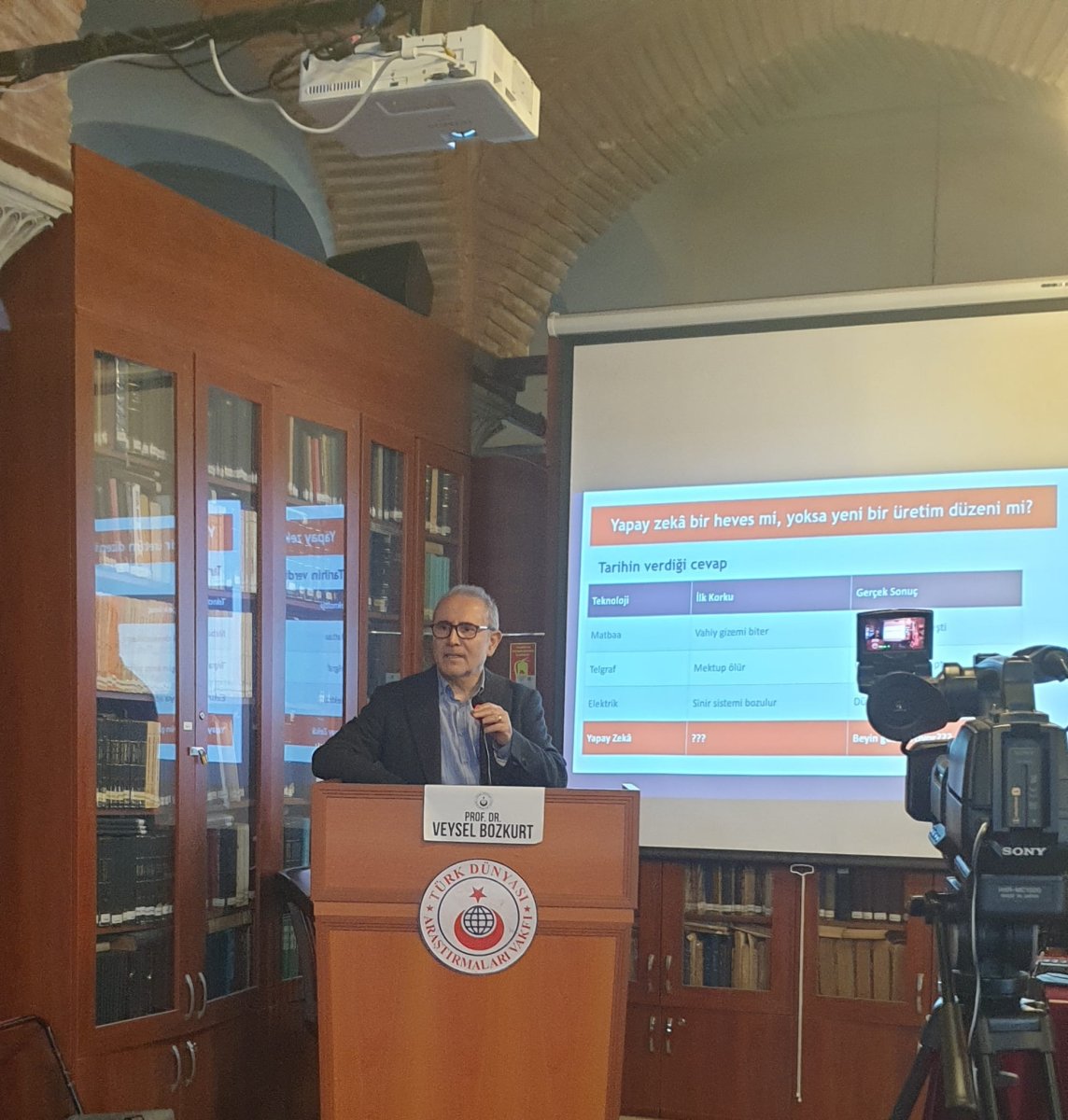Turan Kültür Merkezi Süleymaniye Kürsüsü etkinliklerimize, 4 Nisan 2026 Cumartesi günü 14.00’te, İstanbul Üniversitesi Türkiyat Araştırmaları Enstitüsü konferans salonunda İstanbul Üniversitesi Öğretim Üyesi Prof. Dr. Veysel Bozkurt’un verdiği “Yapay Zeka Ne Vadediyor?” konulu konferansımızla devam ettik.