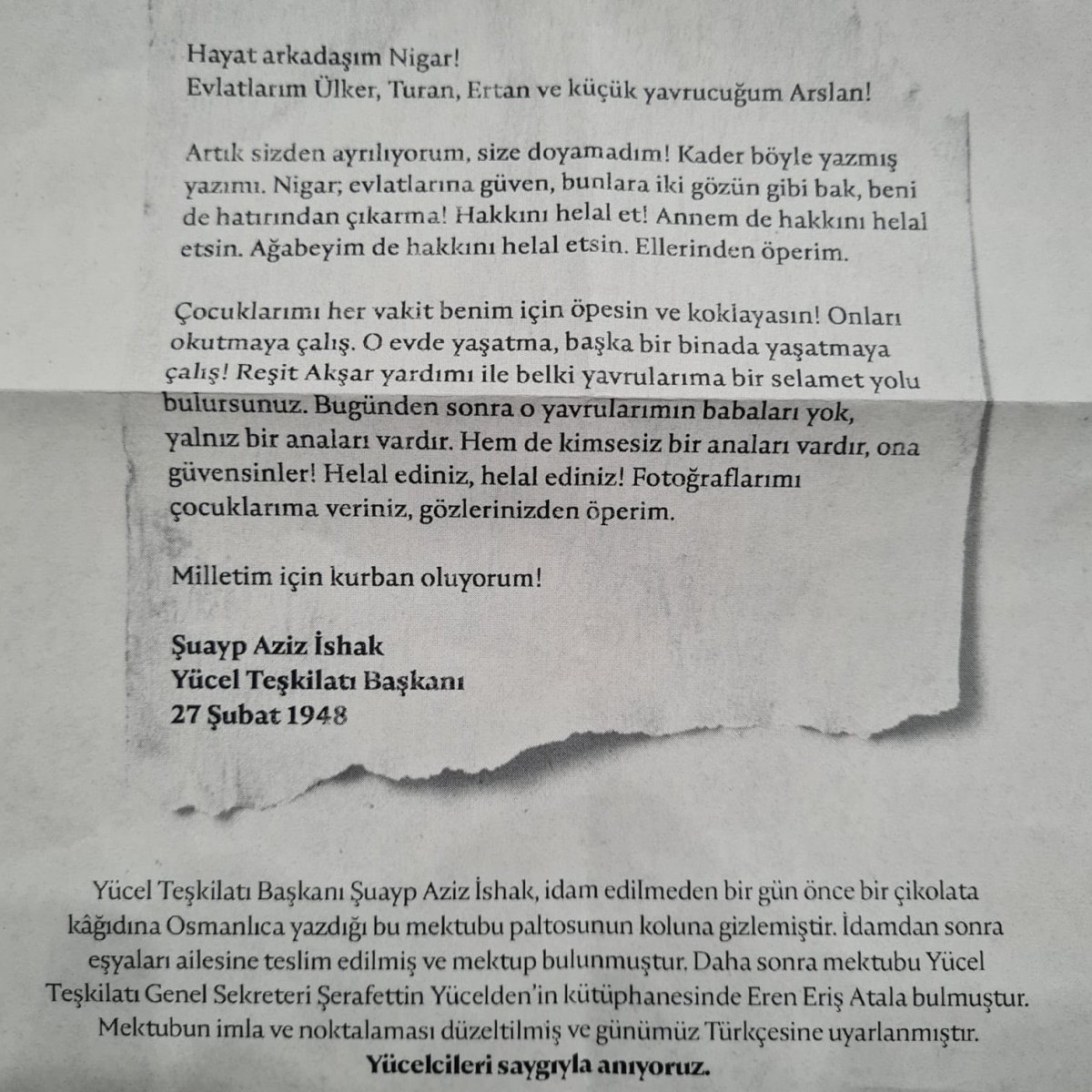 Bu mücadelenin hiç de kolay olmadığını, büyük baskılar ve takibatlara uğradığını, sonunda da Şuayp Aziz, Ali Abdurrahman Ali, Nazmi Ömer ve Adem Ali Adem’in kurşuna dizilerek şehit edilmeleri, 65 Yücelci’nin ağır cezalara çarptırılmasıyla Yugoslavya Türklerinin baskı altına alınmasıyla büyük bedel ödendiğini belirten Eriş, birkaç yıl sonra da yüzbinlerce Türk’ün Türkiye’ye göç etmek zorunda kaldığını söyledi.
